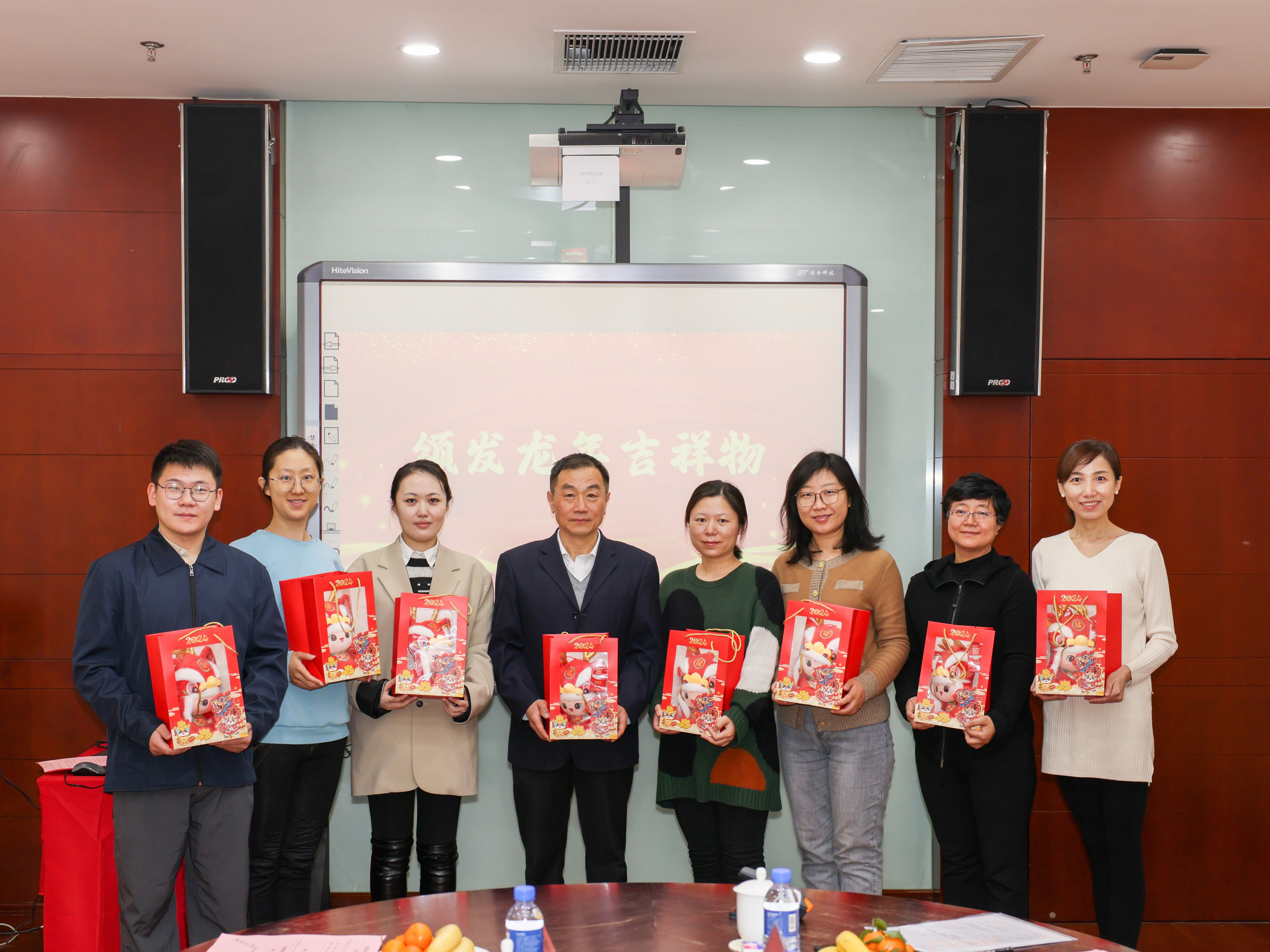 颜吾佴为办公室全体成员送龙年吉祥物。联欢会现场节目精彩纷呈,《你演我猜》、《听音识曲》、《夹纸运杯》、《金鸡独立》、大合唱《如愿》、《拜年手势舞》等节目将联欢会推向一个又一个高潮。此次联欢会展示了思政中心办公室的活力风采,弘扬了积极向上的精神文化,营造了和谐发展的良好氛围,彰显了团结协作的团队精神。